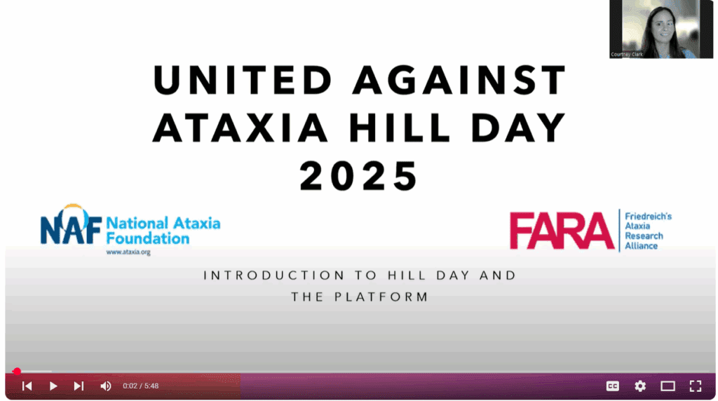Our United Against Ataxia Hill Day training videos break down each topic into short, easy-to-follow segments so you can feel confident and prepared for your meetings on Capitol Hill.