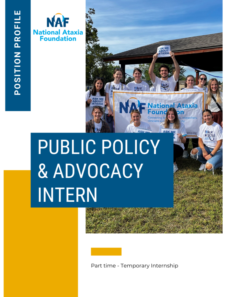 - Support the work of NAF and the Community Services Director by providing analysis, research, training/technical assistance, on a range of issues relevant to families impacted by Ataxia including: health care access, insurance coverage, research funding, and treatment development.